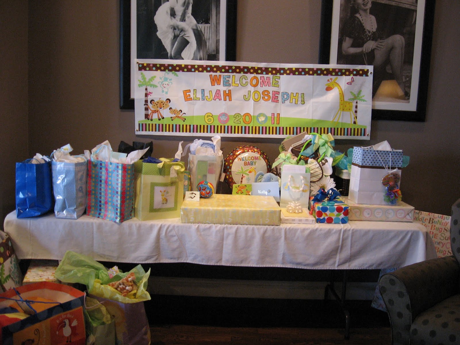 Then, it was time to open gifts, and there were gifts galore! Elijah's wardrobe is now very well stocked along with all the other baby essentials he will need during the first part of his life.